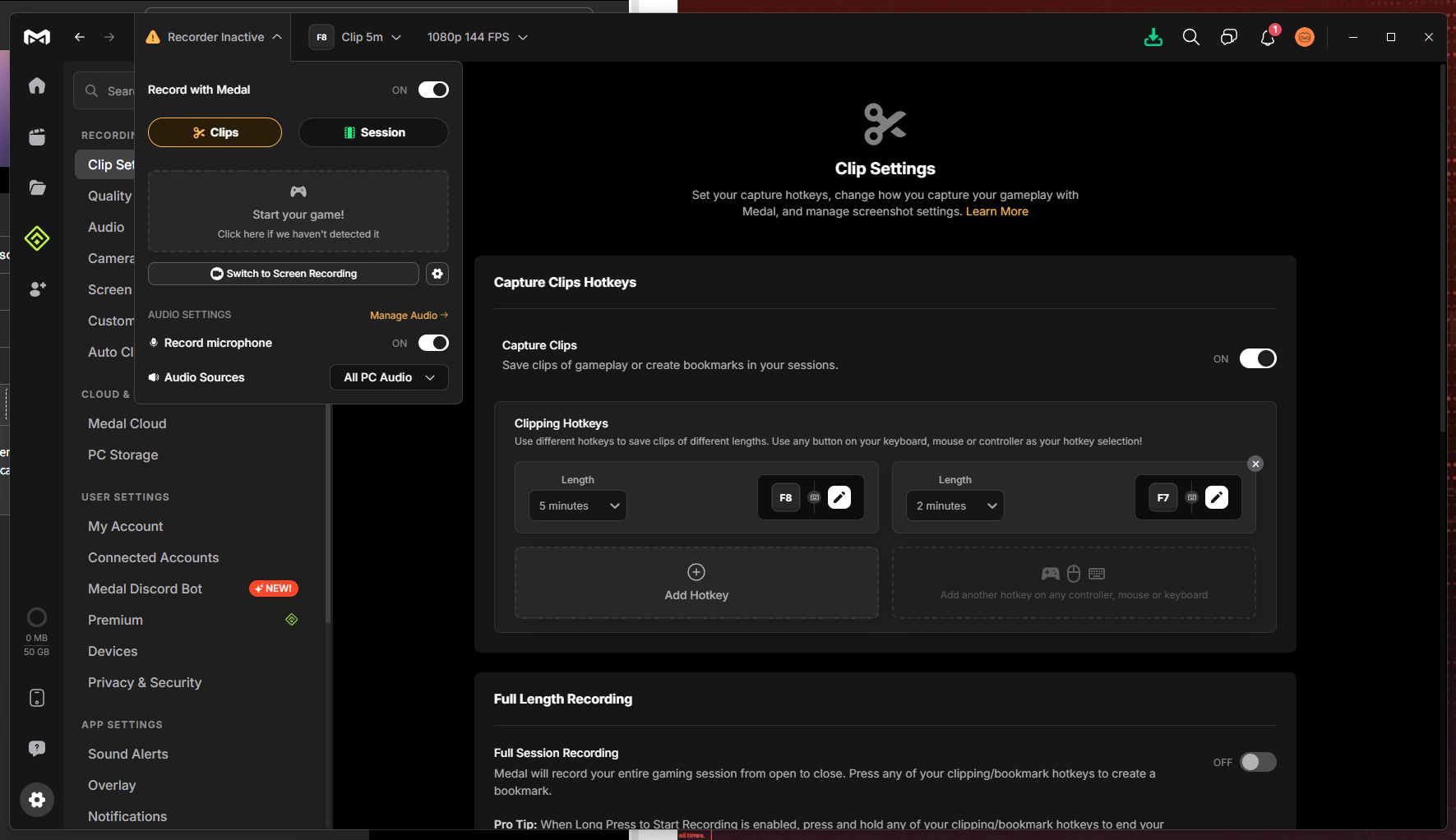 After whitelisting the Install folder, try forcing a repair on Medal and see if that helps: