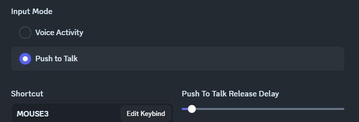 This is more of a feature request. I use the push to talk feature since I cough a lot, however I notice that it cuts off parts of the last word because I release a little early. It's not a problem on Discord because they have a "Push to talk release delay", and was hoping this could be a feature soon.