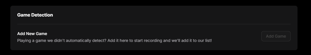 If your game is not being detected, you can go to Settings > Clip Settings and look for Game Detection. Once you have your game open, hit the Add Game button.