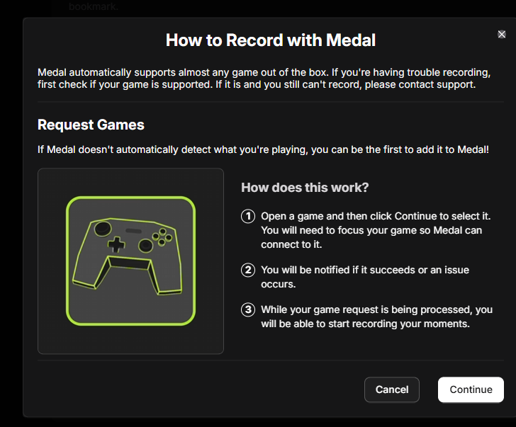 Follow the prompts on the screen, once Medal has started to hook into your game, wait a couple of minutes and you should be good to go!